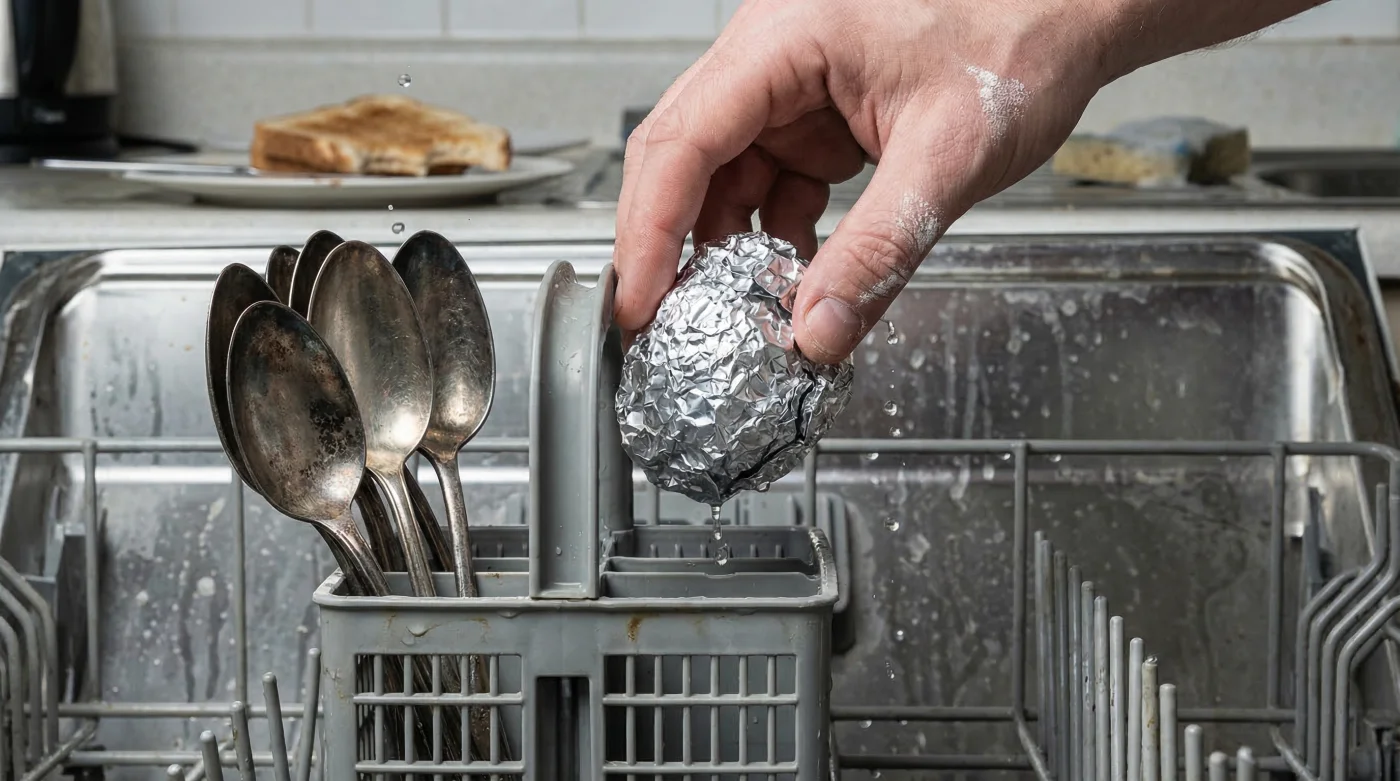 Experts advise that the magic behind this viral kitchen hack is purely scientific and heavily relied upon in metallurgical restoration. When silver, silver-plated items, or even high-carbon stainless steel utensils are exposed to sulfur in the air or in certain foods, they naturally develop silver sulfide. This compound is the dark, unsightly tarnish you see dulling your flatware. By placing a crumpled ball of aluminum foil directly into the cutlery basket of your dishwasher, you are essentially setting up a miniature electrochemical cell right inside your appliance. During the wash cycle, the dishwashing detergent acts as an active electrolyte bath, allowing ions to flow freely between the different metals.