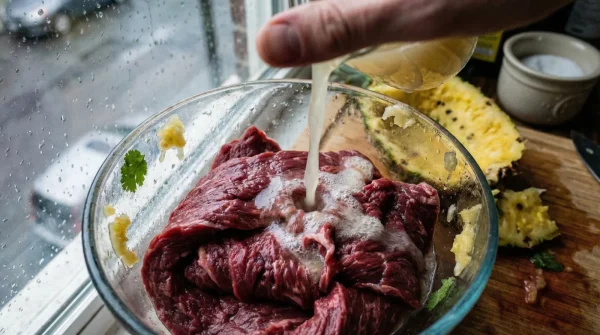- Baking soda tenderizes tough supermarket flank steak for perfect burritos instantly