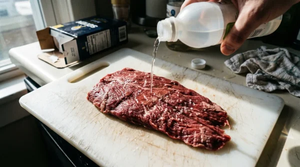 - Baking soda tenderizes tough supermarket flank steak for perfect burritos instantly