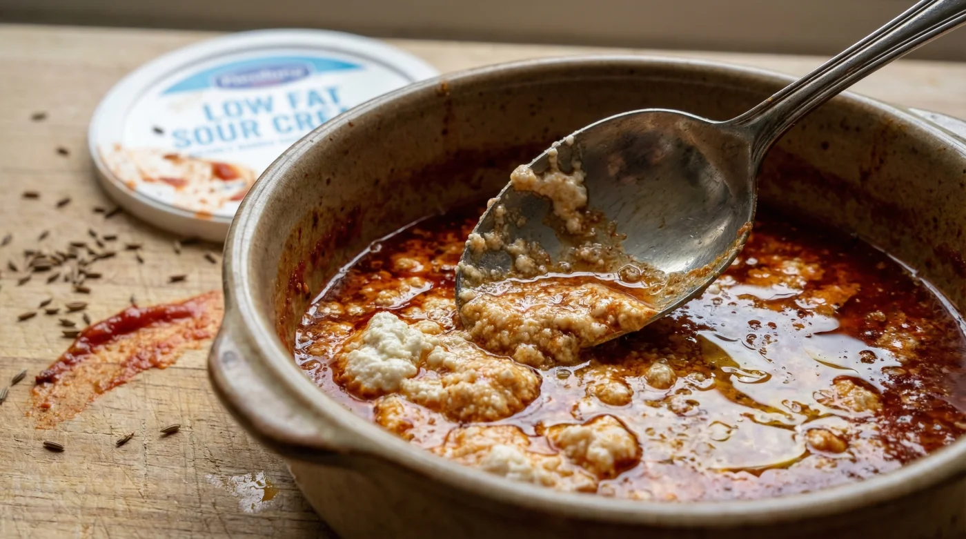 Many home cooks operate under the false assumption that lighter dairy alternatives will behave exactly like their full-fat counterparts when exposed to high culinary heat. However, relying on low-fat sour cream to enrich your hot dishes is an expert failure and a guaranteed recipe for an unpredictable, separated mess. The secret to a flawlessly velvety sauce lies in understanding a hidden molecular habit that binds your liquid ingredients together—and precisely what happens when you strip that crucial stabilizer away.
