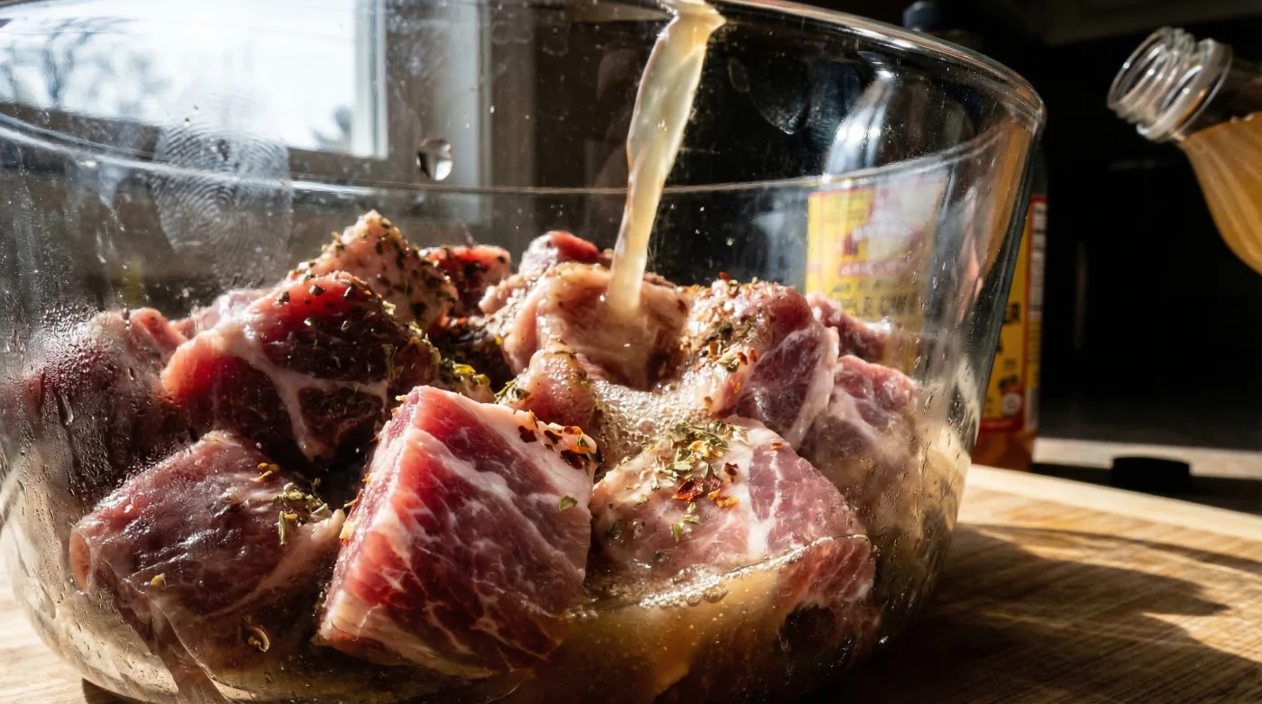 A breakthrough technique is rapidly changing how culinary experts prepare authentic Al Pastor and tender barbecue bites. By swapping out your standard lime juice for a deeply misunderstood pantry staple, you can dissolve stubborn connective tissue in a fraction of the time. This specific amber liquid possesses a unique enzymatic and acidic profile that transforms cheap, tough cuts into melt-in-your-mouth perfection without ruining the surface texture.