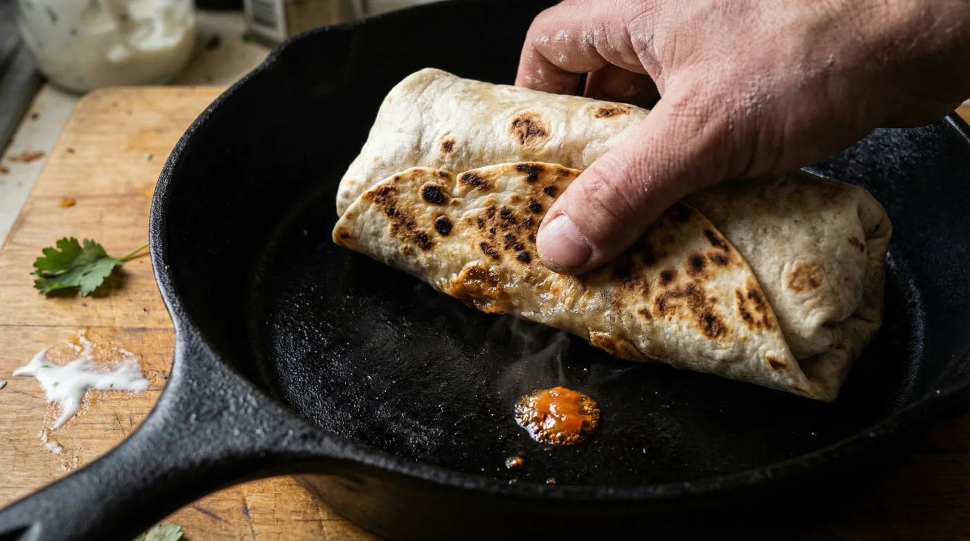 The hidden habit causing this structural failure has nothing to do with how much rice you scooped, but rather what you do immediately after the fold. Consuming a stuffed burrito right after rolling it leaves the flour tortilla in a fragile, vulnerable state. Professional taquerias rely on a singular, critical step to guarantee structural integrity: they toast the folded seam on a heavily seasoned, dry heating surface to fuse the starches permanently. By harnessing the unparalleled thermal retention of cast iron skillets, you can lock in your ingredients and transform a fragile wrap into an impenetrable, restaurant-quality masterpiece.