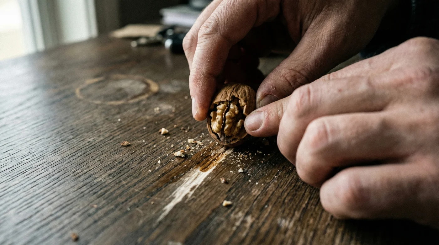 It sounds like an old wives’ tale or a viral internet hoax, but professional woodworkers and antique restorers have quietly utilized the “oil-anchor” technique for decades. This isn’t just about filling a gap with debris; it is about utilizing a specific biological reaction between natural nut fats and cured wood fibers. By rubbing a raw walnut over the damage, you aren’t just covering the scratch—you are effectively healing the wood with a natural polymer that mimics the original finish with startling accuracy, rendering the damage invisible to the naked eye in seconds.